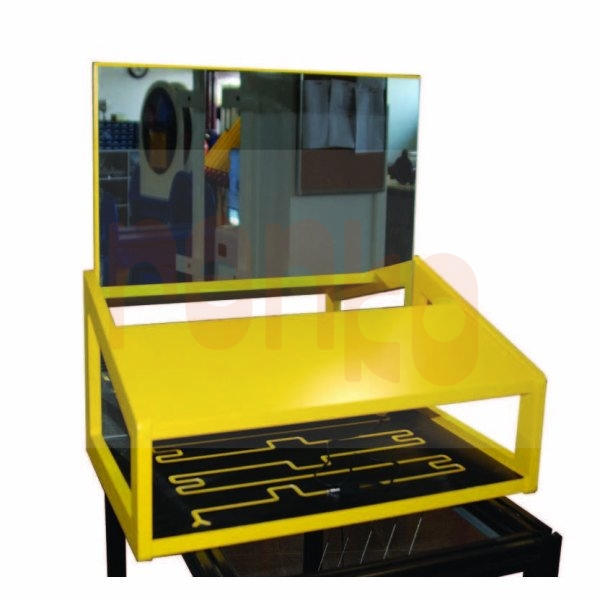 Bu düzenek, bir düzlem ayna, labirent şeklinde yollar içeren tabla ve metal kalemden oluşmaktadır. Yolların aynadaki görüntüsüne bakılarak ve metal kalem ile yolu izleyerek yolun dışına çıkmadan labirent yolun en sonuna kadar varmaya çalışılır. Kalem labirent yolun dışına çıktığında elektrik devresi tamamlanır ve sesli uyarı duyulur. Aynadaki görüntü ters olduğundan göz – beyin – el koordinasyonu sağlamak ve el ile takip etmek zorlaşır. Not: Masaüstü kullanımına uygundur.