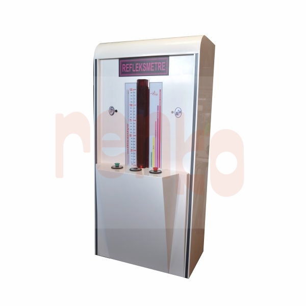 Bilgisayarlı refleksmetre düzeneğinde ses ve görsel refleksleri ölçebilen iki seçenek bulunmaktadır. Sesli refleks ölçümünde cam kırılma sesi duyulduğunda düğmeye basılır. Ses ile düğmeye basma arasında geçen zaman kulak – beyin – el koordinasyonu için geçen süredir. Görsel refleks ölçümünde ekranda kırmızı bir dairenin belirmesiyle butona basılır. Bu arada geçen süre ise göz-beyin el koordinasyonu için geçen süredir. Yukarı doğru kayan LED ışıklar butona basıldığında durur.