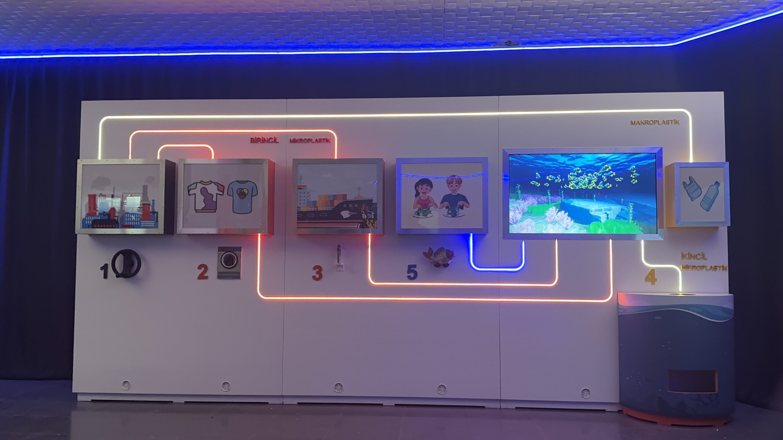 Bu interaktif demo, mikroplastiklerin ne olduğunu, nasıl oluştuğunu ve denizlerimizi, göllerimizi ve nehirlerimizi nasıl kirlettiğini gözler önüne seriyor. Sırasıyla butonlara basarak mikroplastiklerin suya nasıl karıştığını ve su canlıları üzerindeki zararlarını etkileyici görsellerle adım adım dinleyip gözlemleyin. Bu demo, çevremizi korumanın neden bu kadar önemli olduğunu ve bireysel olarak mikroplastik kullanımını azaltmamız gerektiğini anlatıyor.