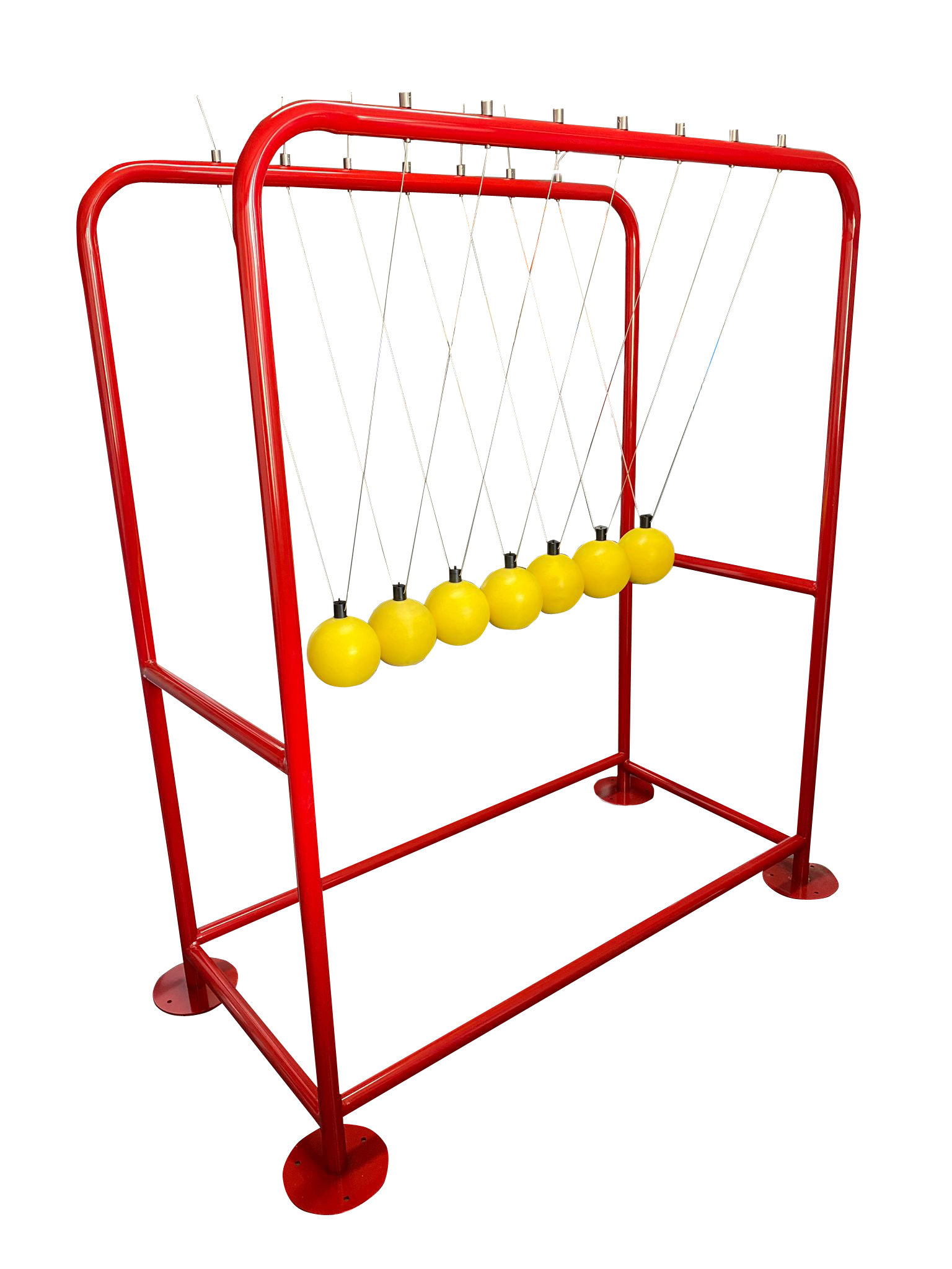 Bu düzenek, enerjinin ve momentumun korunumunu göstermek amacı ile tasarlanmıştır. İlk top çekilip bırakıldığı anda bir hız kazanır, bu hız ile topun kütlesinin çarpımı sonucu oluşan fiziksel büyüklüğe momentum denir. Toplar eşit kütleli olduğu için ilk top yanındakine çarptığı anda momentumun korunumu prensibine dayalı olarak, diğer topa kendi momentumunu aktarır. Bu şekilde aktarım tamamlanarak sondaki top ile aynı momentuma sahip olur. Kütlelerin ve momentumun aynı olduğundan sondaki top, ilk topun hızı ile hareket edecektir.