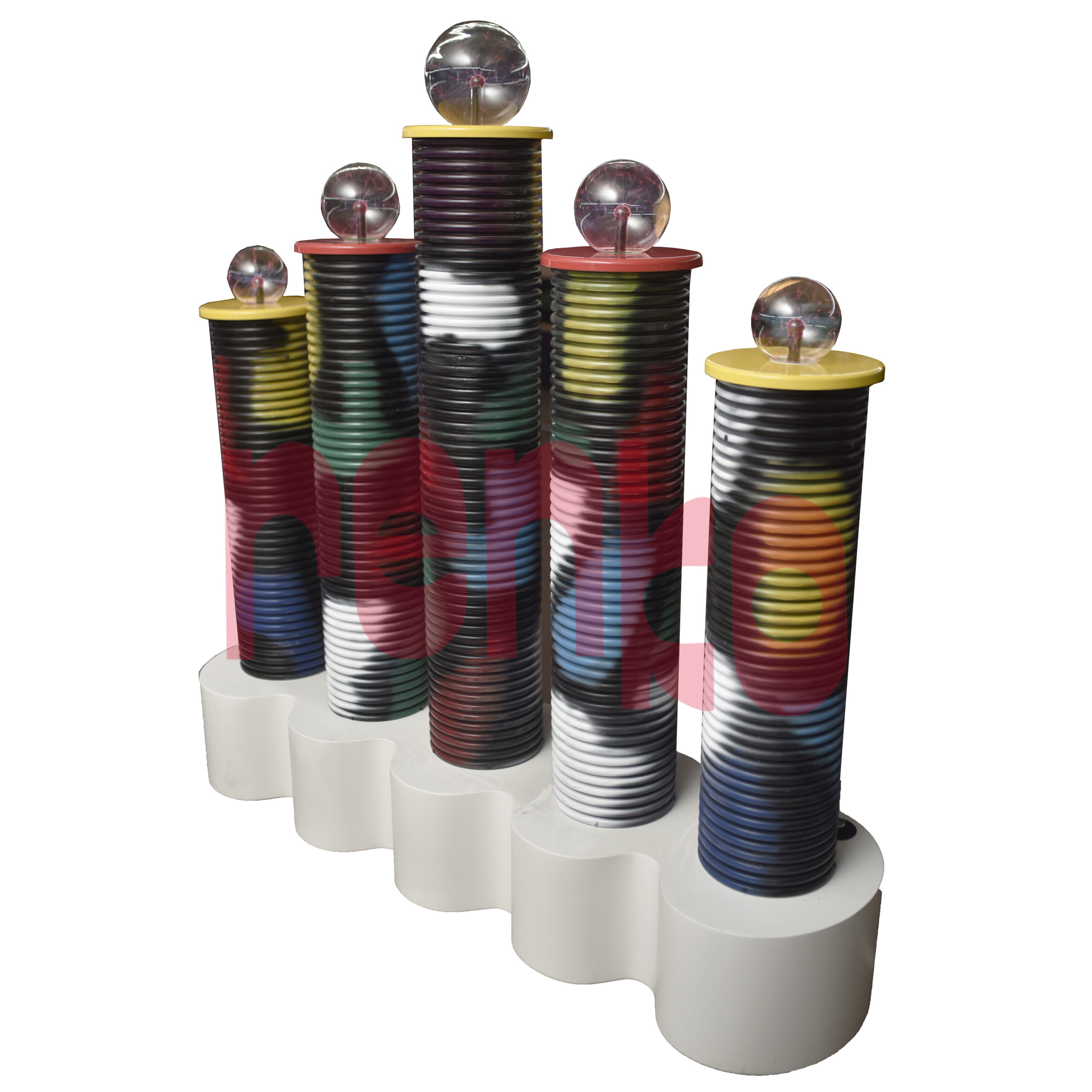 Cam fanusun içinde düşük basınçlı gaz karışımı bulunmaktadır. Uygun yüksek elektrik potansiyel fark (voltaj) ve basınçta gazlar iyonlaşarak tıpkı bir iletken gibi elektriği iletir ve arklar oluşur. Küreye dokunduğunuzda plazma topunun elektrik alanını etkileyerek tıpkı bir paratoner gibi elektrik arklarını kendinize çekersiniz. 5 adet farklı çaplarda plazma küreleri silindirik bir kaide üzerinde gözlenir. Görsel bir şov meydana gelir.